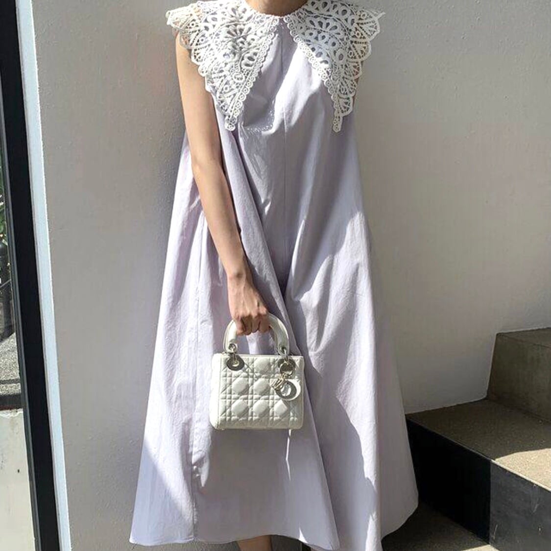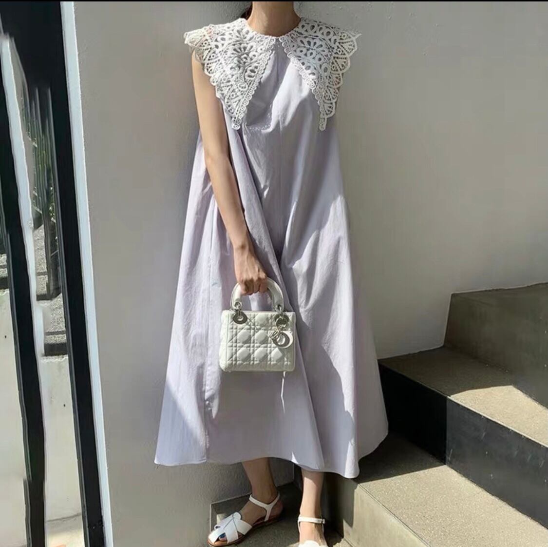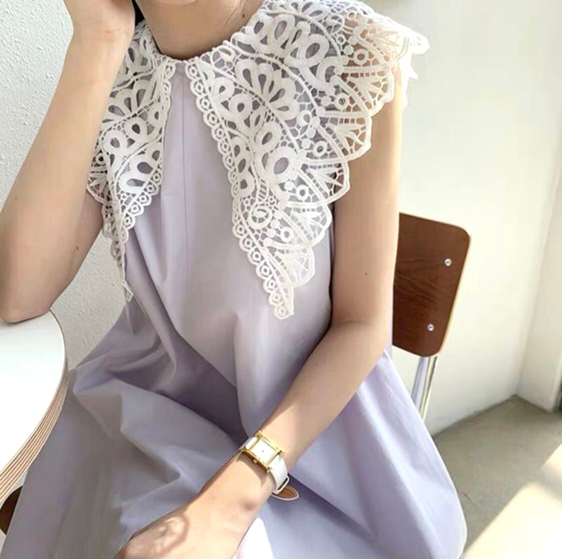 ノースリーブですが、Big Collarで二の腕もカバーできるワンピース♡