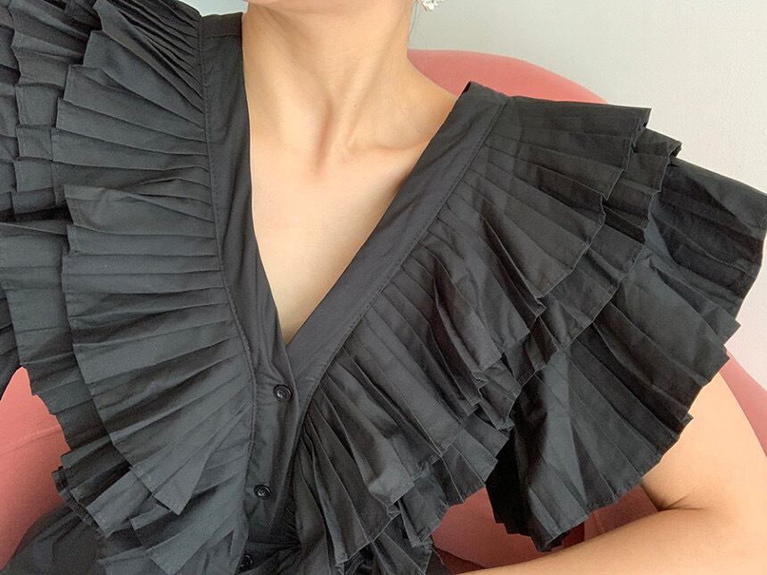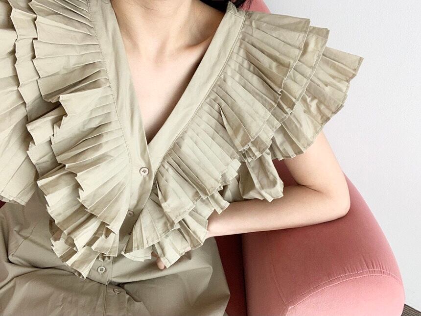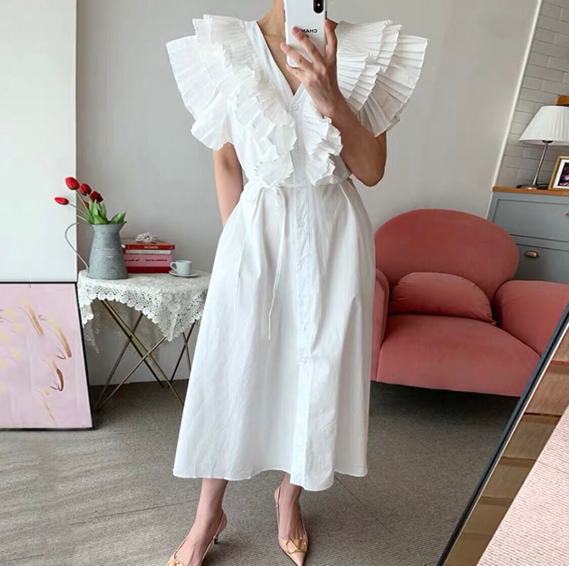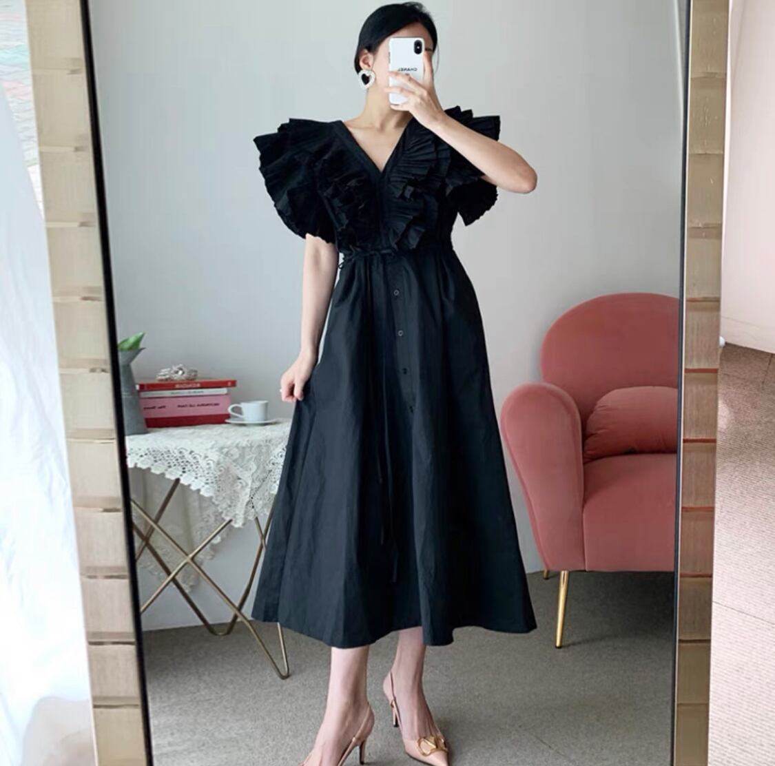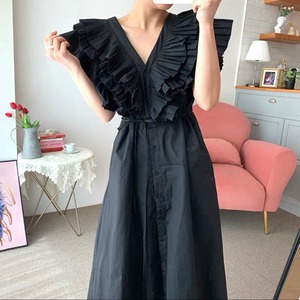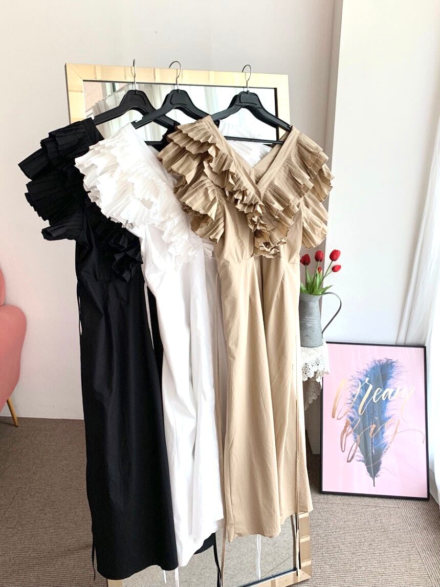 エレガントフリルワンピース (ホワイト・ブラック・ベージュ)