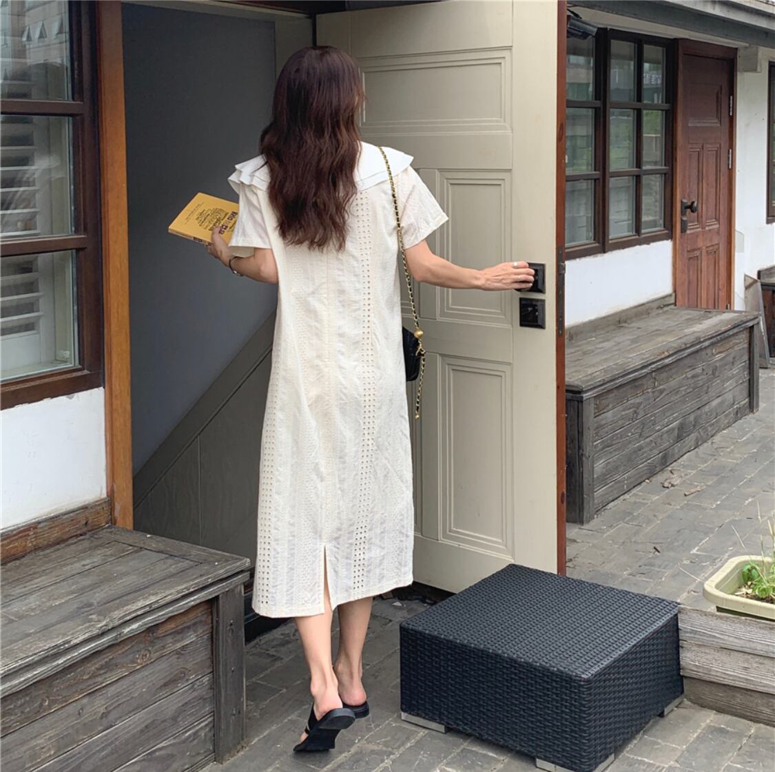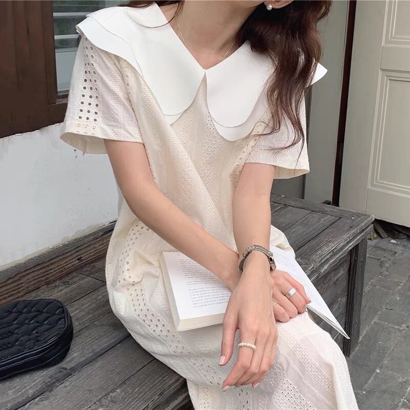 チューリップの花びらの様な襟が可憐で上品なワンピースです♪