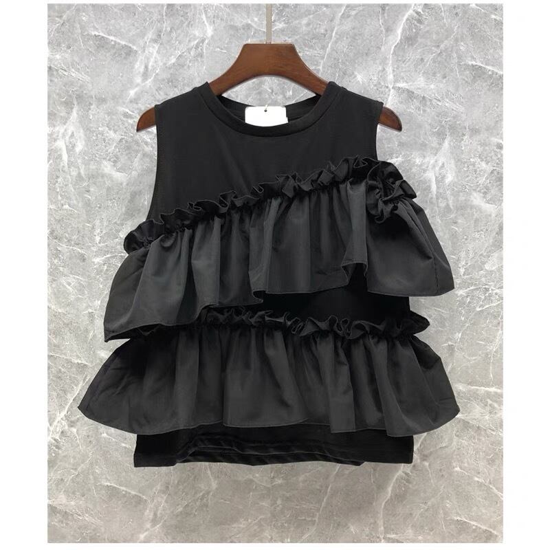 ダブルフリルのデザインがとても上品なトップスです。デザイン性があるので、アクセサリー要らずでも決まる!
