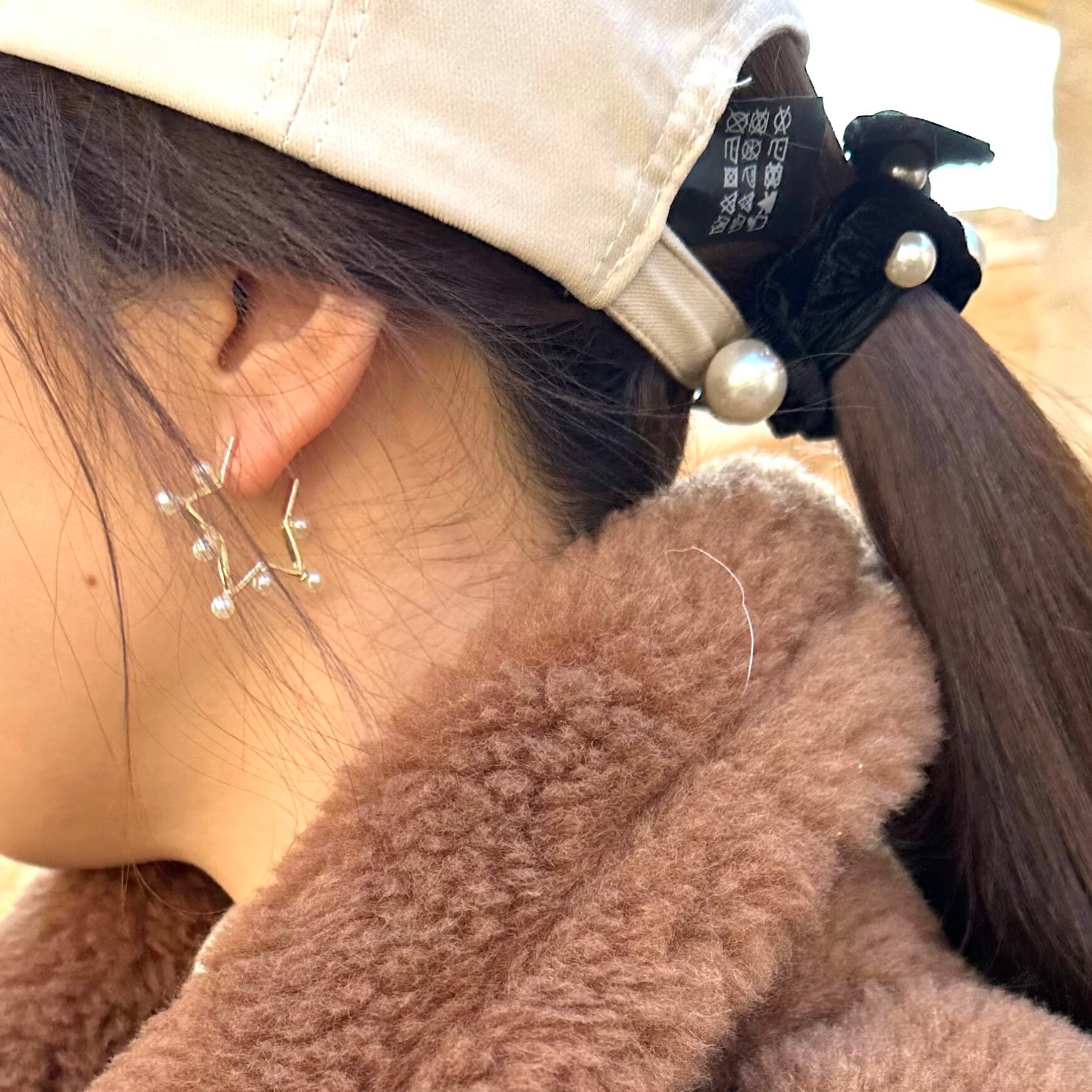 シンプルながらも存在感のあるスターとハートの形のパールが、耳元を華やかに彩ります。